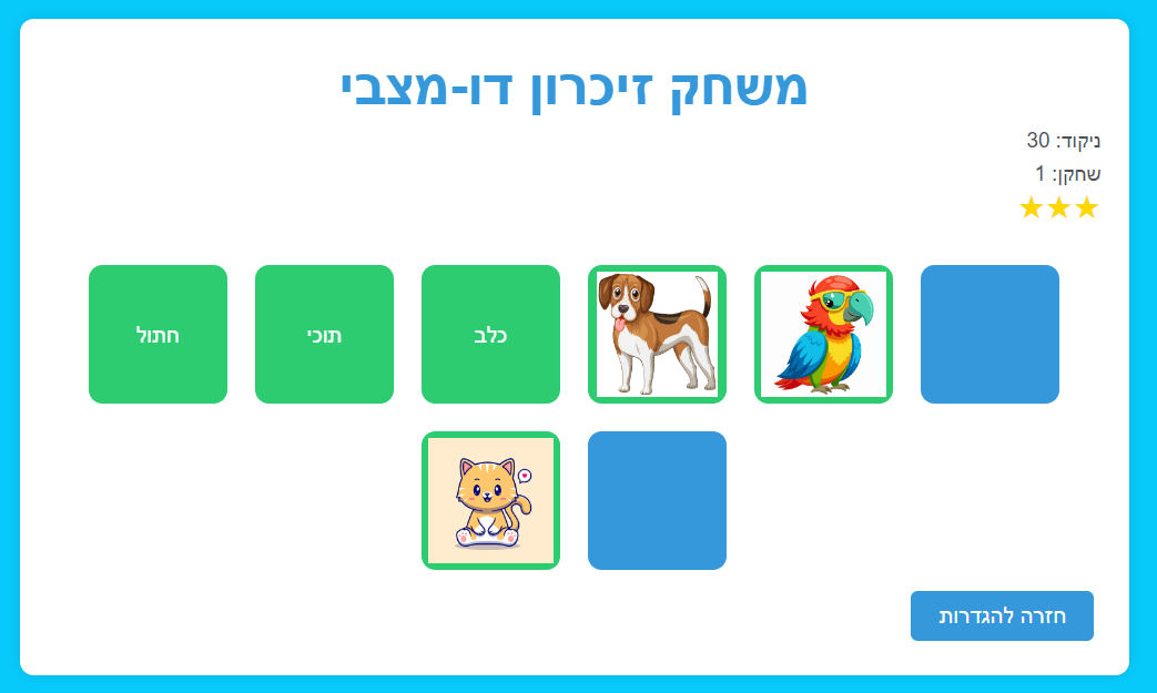 – חיזוק הזיכרון החזותי – תרגול חוזר ונשנה – התאמה אישית